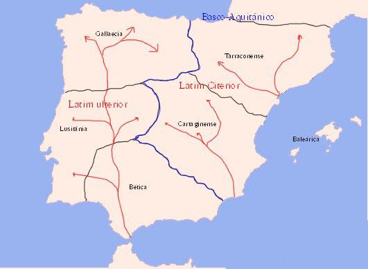 (1) O latim galaico é um latim ulterior, diferente em origem do latim citerior. Se bem este segundo foi um latim que penetrou com a chegada dos romanos nos século III a.C. na península pela atual Catalunha, ou a Tarraconense da época, o primeiro, o citerior é um latim que chegou via comercial e militar pela Bética até a Gallaecia passando-se pela Lusitânia. Portanto o latim galaico do qual surgem tanto o galego-português como o asturo-leonês é um latim ulterior, diferente em origem e diferente em substrato do citerior que posteriormente criaria o catalão e o navarro-aragonês. Este último em contato com o basco.